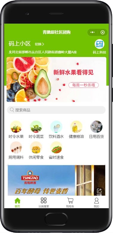 河北碼上科技簽約開發(fā)青脆甜小程序,利用社區(qū)的人員的集中性和對日常生活用品等的需求性加上微信的便捷成功開發(fā)社區(qū)團購系統(tǒng)。方便快捷的方式為商家?guī)砀嗟挠?br />