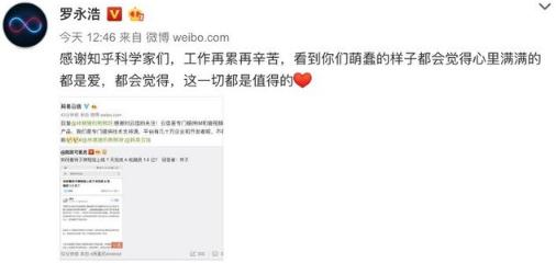老羅隨后發(fā)博:“感謝知乎科學家們,工作再累再辛苦,看到你們萌蠢的樣子都會覺得心里滿滿的都是愛,都會覺得,這一切都是值得的”