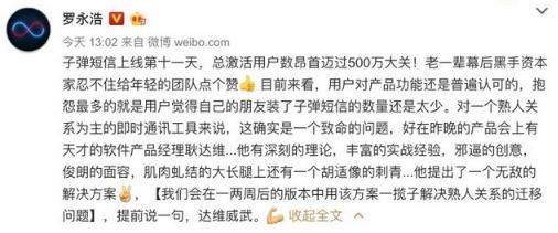 子彈短信上線僅11天用戶數量即突破500萬大關,但老羅自己也表示,對于一個熟人關系為主的即時通訊工具來說“沒有好友”確實是個致命的問題。但他們有一個天才產品經理提出了一個無敵的解決方案,會在一兩周后的版本中解決熟人關系的遷移問題。