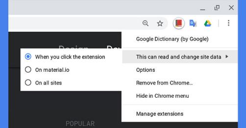 1. Google 允許用戶對擴展程序進行限制,使其僅限于某些特定網(wǎng)站。此外用戶也可以設(shè)置要求擴展每次運行必須要征詢用戶的許可。