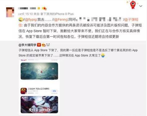 按照官方的解釋,子彈短信這次踩中了「侵權(quán)」的雷。反觀國內(nèi),很少看到有因?yàn)榍謾?quán)受到應(yīng)用商店處罰的案例。