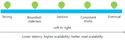 由于允許全局寫入多主數(shù)據(jù),因此一致性問(wèn)題變得非常重要。Cosmos DB 提供了五個(gè)一致性級(jí)別,從強(qiáng)一致性(讀取數(shù)據(jù)時(shí)始終返回文檔的最新版本)一直到最終一致性(提供非常快的讀取和寫入速度,但可能導(dǎo)致無(wú)序數(shù)據(jù))。