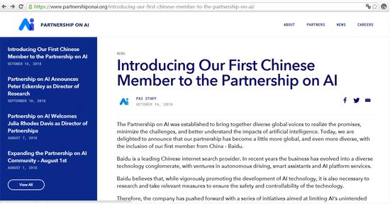 PingWest 品玩 10 月 17 日訊,引述網(wǎng)易新聞消息,美國時間 10 月 16 日,Partnership on AI 在最新公告中歡迎首位中國新成員百度加入,并稱此次合作是“建立一個真正全球性合作機構的重要一步”,未來百度將與 Partnership on AI 中的其他成員一同致力于 AI 研發(fā)標準和全球性 AI 政策制定。