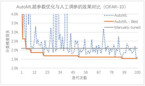 相比于費(fèi)時費(fèi)力的人工調(diào)參,PocketFlow 框架中的 AutoML 自動超參數(shù)優(yōu)化組件僅需 10 余次迭代就能達(dá)到與人工調(diào)參類似的性能,在經(jīng)過 100 次迭代后搜索得到的超參數(shù)組合可以降低約 0.6% 的精度損失;通過使用超參數(shù)優(yōu)化組件自動地確定網(wǎng)絡(luò)中各層權(quán)重的量化比特?cái)?shù),PocketFlow 在對用于 ImageNet 圖像分類任務(wù)的 MobileNet-v1 模型進(jìn)行壓縮時,取得了一致性的性能提升;用 PocketFlow 平均量化比特?cái)?shù)為 8 時,準(zhǔn)確率不降反升,從量化前的 70.89% 提升到量化后的 71.29%。