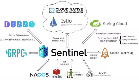 Sentinel 的開源生態(tài)非常廣泛,其針對(duì)常用的框架和庫進(jìn)行了適配,包括 Web Servlet、Dubbo、Spring Cloud 和 gRPC 等,用戶只需引入相應(yīng)依賴并進(jìn)行簡(jiǎn)單配置即可快速接入 Sentinel。同時(shí),Sentinel 動(dòng)態(tài)規(guī)則源針對(duì)常見的配置中心和遠(yuǎn)程存儲(chǔ)進(jìn)行適配,目前已支持 Nacos、ZooKeeper、Apollo、Redis 等多種動(dòng)態(tài)規(guī)則源,可以覆蓋到很多的生產(chǎn)場(chǎng)景。未來,Sentinel 還會(huì)對(duì)更多常用框架和配置中心進(jìn)行適配,覆蓋更廣泛的場(chǎng)景。