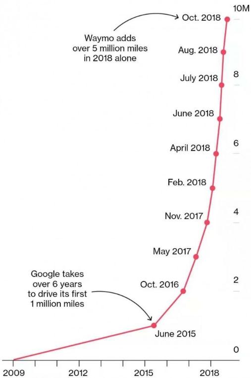 Waymo 已經(jīng)累積了 1000 萬(wàn)英里的測(cè)試?yán)锍?2016 年 12 月分拆并更名為 Waymo)