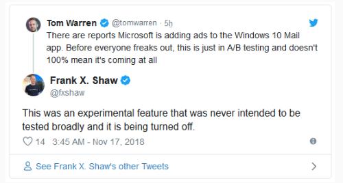 在用戶憤怒地遞交報(bào)告之后,微軟今天證實(shí)該公司僅在有限數(shù)量的設(shè)備上測(cè)試了廣告,并且正在關(guān)閉。