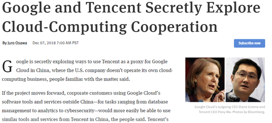 北京時(shí)間 12 月 7 日,據(jù) The Information 援引消息人士,谷歌和騰訊云正探索在云計(jì)算領(lǐng)域進(jìn)行合作。若進(jìn)展順利,在中國境外使用谷歌云服務(wù)進(jìn)行數(shù)據(jù)庫管理、分析的機(jī)構(gòu)客戶將能在中國境內(nèi)使用騰訊的類似服務(wù)和工具,而騰訊的中國客戶也能在出境時(shí)便捷使用谷歌云。
