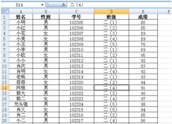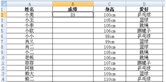 完成上述步驟后,我們點(diǎn)擊“enter”鍵,表二第一個單元格就會出現(xiàn)小美的成績。然后我們把將鼠標(biāo)放在小美成績單元格右下角,當(dāng)光標(biāo)變成“十”字的時候,按左鍵不放,往下拉到最后一個單元格,我們就可以表二所有成績都引用填充好。