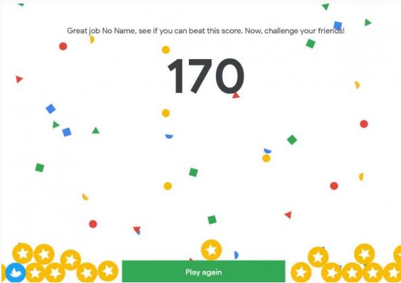 例如小編在游戲時候遇到的問題是:“2018 年搜索次數(shù)最多的繪畫是什么?”以及“美國哪個州搜索‘mega millions’最多?”,玩家只有 10 秒的時間來回答每個問題,一旦做錯三道題目這個比賽就會結(jié)束,之后就會公布的得分。