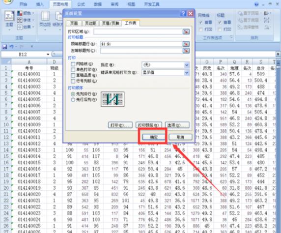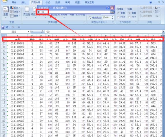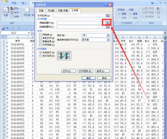在原來工作表中選中第一行,也就是光標(biāo)選中你需要每頁都打印的表頭部分。