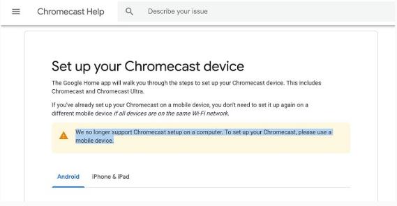 除了 Play 商店和 App Store 的軟件下載鏈接,此前的頁(yè)面還包括了“使用此計(jì)算機(jī)來(lái)配置 Chromecast”的選項(xiàng)。