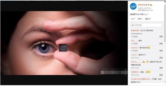 今天清晨,英特爾中國(guó)微博發(fā)布了一張的圖片,圖片上有一款不知名的芯片,還讓網(wǎng)友猜是什么芯片。