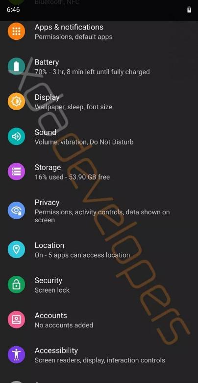 XDA 網(wǎng)站的屏幕截圖表明,安卓 10 系統(tǒng)將把黑暗模式擴(kuò)展到更多的地方,包括設(shè)置菜單,它可能有一個(gè)設(shè)置來(lái)強(qiáng)制使用黑暗模式,即使在沒(méi)有內(nèi)置黑暗版本的應(yīng)用程序中也是如此。