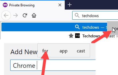 現(xiàn)在在 Chrome 中,如果用戶訪問 Omnibox 或中的文本字段并輸入內(nèi)容,則會(huì)在用戶輸入時(shí)彈出文本建議,就像他們在 Firefox 中為我們所做的那樣(請查看下面的截圖)。