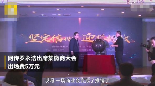 有傳聞稱(chēng),老羅參加這次微商招商大會(huì)是為了 5 萬(wàn)元的出場(chǎng)費(fèi),不過(guò)招商會(huì)主辦方稱(chēng)是謠傳,還說(shuō)“好朋友一起出去出個(gè)行這些都是很正常的”。