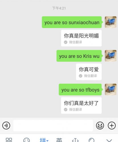具體來看,當(dāng)網(wǎng)友輸入 youaresoKriswu 后,得到的翻譯結(jié)果為你真可愛,而當(dāng)網(wǎng)友輸入 you aresotfboys 時(shí),得到的結(jié)果為你們真是太好了。