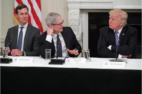 蘋果公司首席執(zhí)行官蒂姆·庫克(Tim Cook,左)與美國總統(tǒng)唐納德·特朗普(Donald Trump)