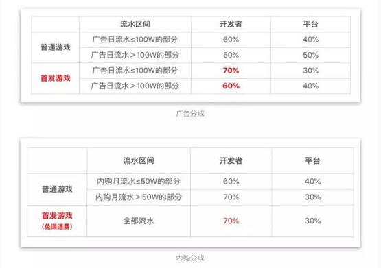 今年 2 月,抖音正式上線了小游戲,并且從廣告和內(nèi)購(gòu)兩方面為小游戲的開(kāi)發(fā)者提供了完備的商業(yè)支持體系。在字節(jié)跳動(dòng)的平臺(tái)上首發(fā)的小游戲除了獲得流量上的扶持之外,還擁有首發(fā)期間免除渠道費(fèi)的特權(quán)及更加優(yōu)惠的分成比例。從現(xiàn)有的分發(fā)路徑來(lái)看,字節(jié)跳動(dòng)對(duì)小游戲的扶持同樣也適用于原生 App 游戲。