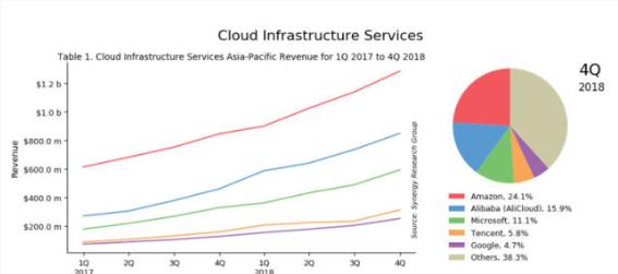2017Q1~2018Q4 亞太區(qū)云基礎(chǔ)設(shè)施服務(wù)市場(chǎng)份額