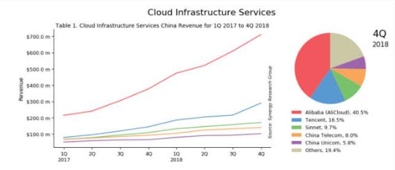 2017 Q1~2018Q4 中國(guó)云基礎(chǔ)設(shè)施服務(wù)市場(chǎng)份額
