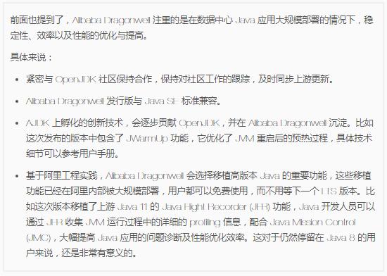 也就是說(shuō) Alibaba Dragonwell 會(huì)基于 OpenJDK 8 和 11?那么以后會(huì)更注重 Java 新特性的跟進(jìn)還是保證提供支持呢?對(duì)它今后的發(fā)展有什么設(shè)想或者目標(biāo)?