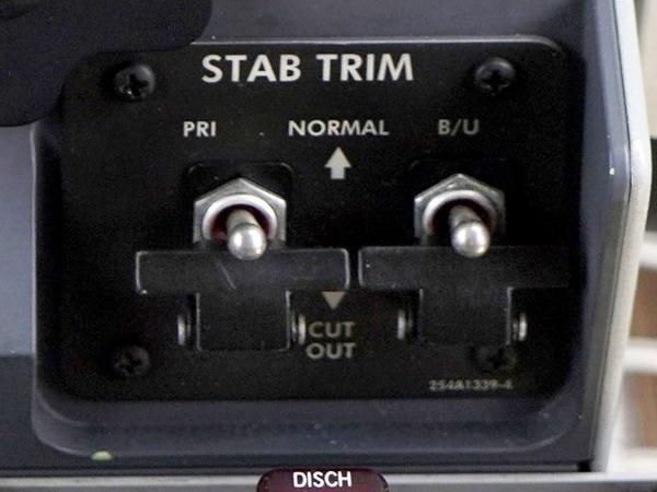 但波音從 737 NG 過渡到 737 MAX 時改變了這兩個開關(guān)的標簽和用途。開關(guān)的功能受到了限制。在 737 NG 中,左邊的開關(guān)可用于關(guān)閉水平穩(wěn)定器的電控制,右邊的開關(guān)標簽叫“AUTO PILOT”,可用于關(guān)閉水平穩(wěn)定器的自動控制。但在 737 MAX 中,兩個開關(guān)的功能重合了,不再能關(guān)閉自動控制如 MCAS。