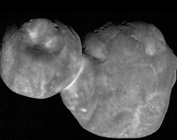 這張照片是“新視野號(hào)”在 1 月 1 日近距離拍攝的,它的直徑 33 公里,呈二裂片結(jié)構(gòu),類(lèi)似一個(gè)微紅色雪人。