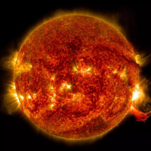 這個結(jié)論基于恒星自轉(zhuǎn)速度和其耀斑活動的數(shù)學關系得出。根據(jù)開普勒太空望遠鏡觀測的數(shù)千顆恒星的活動規(guī)律,科學家發(fā)現(xiàn):恒星旋轉(zhuǎn)得越快,其耀斑噴射就越猛烈。研究認為,早期太陽是一個快速旋轉(zhuǎn)體,它會爆發(fā)出比目前強 10 倍的超級耀斑,而且一天至少爆發(fā) 10 次,爆發(fā)頻率極高。這種高頻超級耀斑使得金星上曾經(jīng)存在的海洋蒸發(fā)殆盡,也導致月球土壤中的鈉和鉀明顯少于地球土壤中的鈉和鉀(因為地球有大氣層與磁場保護,而月球沒有)。