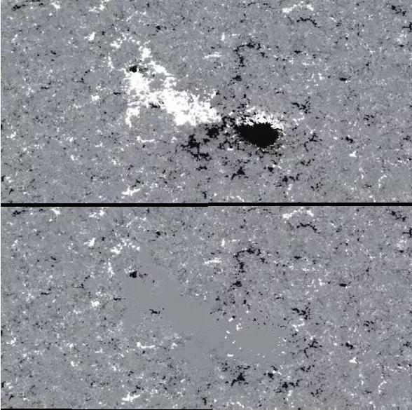太陽(yáng)上經(jīng)常存在兩種磁活動(dòng)。一類是黑子(群),屬于大尺度的磁活動(dòng),其尺度甚至可以達(dá)到 20 萬(wàn)千米,磁場(chǎng)強(qiáng)度可達(dá)數(shù)千高斯,一般壽命為數(shù)十天(短則 1 天,長(zhǎng)則數(shù)月)。另一類是叫做“小尺度磁場(chǎng)”的磁活動(dòng)。小尺度磁場(chǎng)遍布全日面,尺度一般小于 2 萬(wàn)公里、磁場(chǎng)強(qiáng)度一般小于 300 高斯,壽命一般不超過(guò) 1 天(短則數(shù)小時(shí),長(zhǎng)可超過(guò) 1 天)。小尺度磁場(chǎng)主要由太陽(yáng)內(nèi)部浮出,大尺度磁場(chǎng)分裂瓦解,可以成為小尺度磁場(chǎng)。