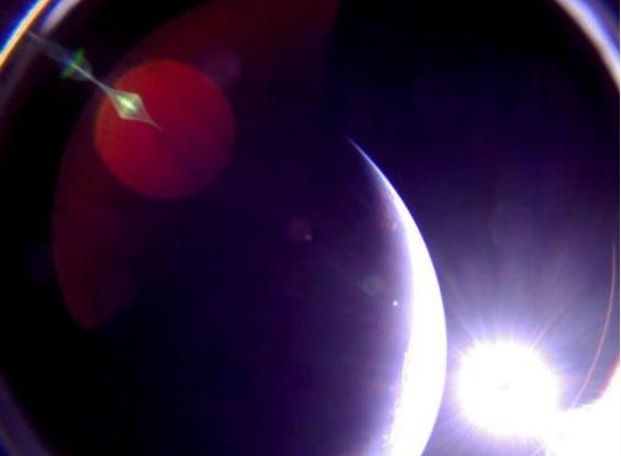 美國東部時間 2019 年 7 月 6 日凌晨 12:41,行星學(xué)會“光帆 2 號”通過安裝在雙面太陽能電池板上的攝像機上拍攝到了這張地球輪廓照片。當時航天器正駛向所處軌道的日落,太陽在右邊可見。這張照片未經(jīng)修飾,陽光散射效果明顯可見。“光帆 2 號”的雙目魚眼相機視場約為 180 度,導(dǎo)致畫面出現(xiàn)一些輕微扭曲和變形。