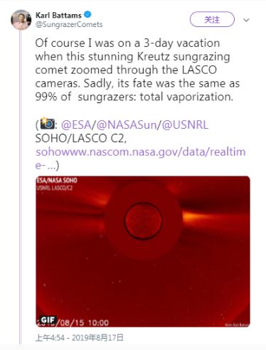 Battams 發(fā)推文稱:“全部汽化。” 但在隨后的推文中,Battams 解釋說這些彗星并不一定能擊中太陽。當(dāng)它們靠近太陽時(shí),它們會(huì)瞬間消失,只會(huì)留下了一道發(fā)光條紋。