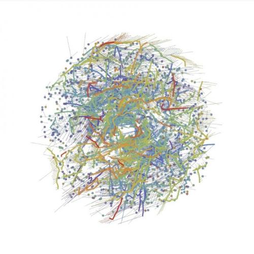 據(jù)外媒報(bào)道,下面這張圖可能看起來像 Jackson Pollock 的一幅畫,但實(shí)際上這幅色彩斑斕的畫是一張全新的銀河系地圖--不同顏色的點(diǎn)和線代表了一同誕生的恒星群。這張根據(jù)去年發(fā)布的蓋亞星系普查數(shù)據(jù)編制的地圖顯示,恒星在誕生后傾向和自己的兄弟姐妹們以巨大的弦掛在一起。