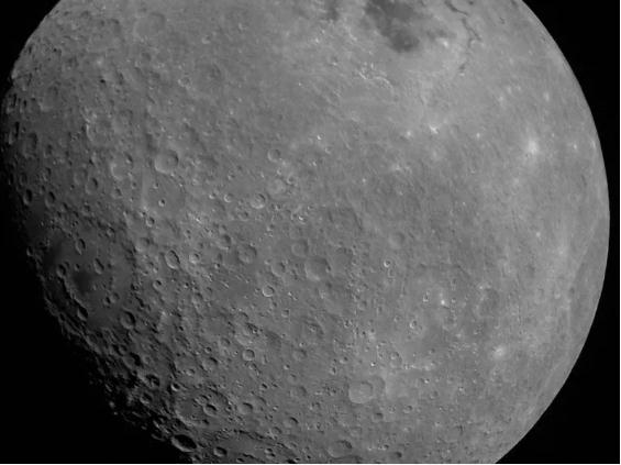 “月船 2 號(hào)”的一個(gè)攝像頭拍下的月球。