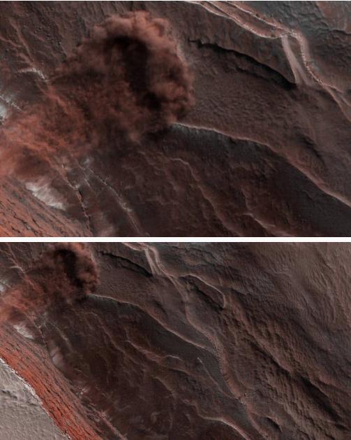這并不是美國宇航局第一次在紅色星球上捕獲雪崩,但這次塵土飛揚(yáng)的圖像是最清晰的一次。