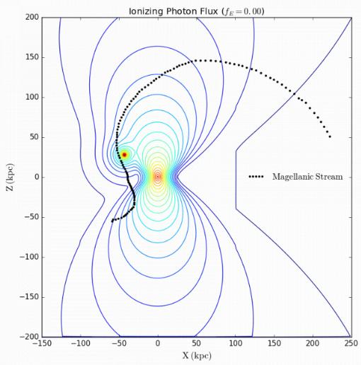 麥哲倫流是小麥哲倫云和大麥哲倫星系留下的氣體痕跡,小麥哲倫云和大麥哲倫星系是繞銀河系運(yùn)轉(zhuǎn)的兩個(gè)矮星系。這種非常暴力的行為,讓麥哲倫流散發(fā)出奇怪的輝光,而這種輝光基本上無法解釋,但是在先前的研究中,研究人員認(rèn)為,塞弗特耀斑發(fā)出的紫外線會(huì)導(dǎo)致麥哲倫流中的氫以特定波長發(fā)光。