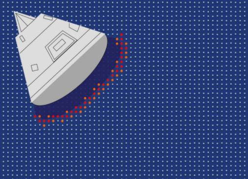 盡管在細節(jié)上可能有所不同,它們的樣子都是大同小異——上小下大,并且下面是一個很鈍的平面。這樣的鈍形平面能保證被壓縮的空氣產(chǎn)生的熱量主要集中于航天器鈍形一面,而不會流失到航天器后面,從而有效的保護后面的航天員或者其他科學(xué)設(shè)備。因此,現(xiàn)在任何的載人航天器的返回艙都被設(shè)計成鈍形的。在返回艙返回大氣層時,它的受熱情況大概如下所示: