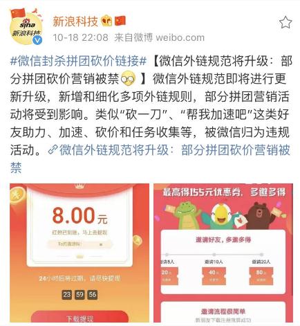 一直以來,微信都是我國最大的社交聊天工具,主要為用戶提供聊天場景和朋友圈溝通,但是近幾年微信卻興起了一種合作營銷,“拼團(tuán)、助力、砍一刀”,每天七大姑八大姨、好友們的聲響,充滿著微信聊天、朋友圈和群聊,非常影響用戶運(yùn)用微信的體驗(yàn)。但是現(xiàn)在好了,《規(guī)范》實(shí)施后或?qū)@些線上營銷活動(dòng)產(chǎn)生影響。