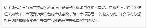 您看到的沒有出現(xiàn)條紋的亮點(diǎn)實(shí)際上是穿越非洲的大雷暴所產(chǎn)生的閃電。您在地平線上看到的綠色光實(shí)際上是地球的高層大氣。