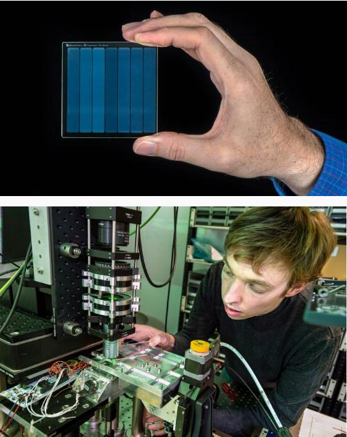 Project Silica 二氧化硅項(xiàng)目利用先進(jìn)的超快激光器件來(lái)完成此任務(wù)。激光在一塊硬質(zhì)石英玻璃中形成三維納米尺度光柵層,并在不同深度和角度產(chǎn)生變形。有點(diǎn)像舊唱片記錄方式,但規(guī)模更緊湊,更復(fù)雜。然后微軟采用機(jī)器學(xué)習(xí)算法,對(duì)通過(guò)玻璃的偏振光產(chǎn)生的圖像和圖案進(jìn)行解碼。