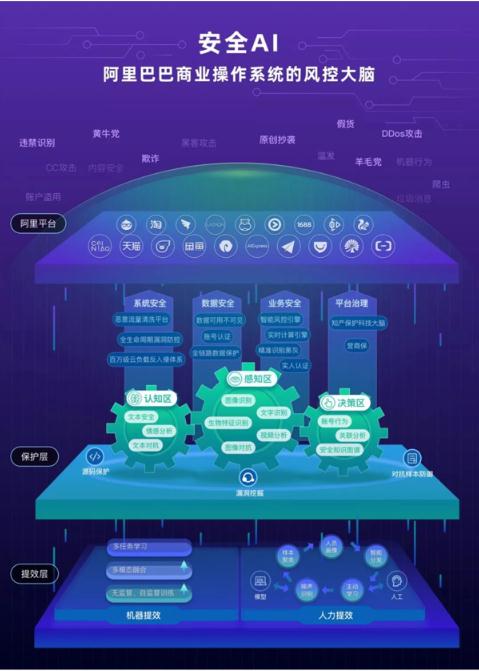 在今年,阿里巴巴的“風(fēng)控大腦”首次在天貓雙 11 場(chǎng)景中全面應(yīng)用安全 AI 能力,運(yùn)用機(jī)器學(xué)習(xí)、神經(jīng)網(wǎng)絡(luò)等形成的 1258 個(gè)算法模型,打通過去分散的數(shù)據(jù)、風(fēng)險(xiǎn)類型,實(shí)現(xiàn)自動(dòng)決策、智能對(duì)抗、實(shí)時(shí)處理,精準(zhǔn)識(shí)別黑灰產(chǎn)行為,保障商家和平臺(tái)的補(bǔ)貼紅包能夠真正惠及消費(fèi)者。