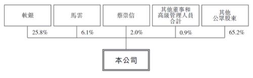 招股書(shū)顯示,阿里巴巴集團(tuán)目前的股權(quán)結(jié)構(gòu)為,截至最后實(shí)際可行日期,軟銀實(shí)益擁有約25.8%已發(fā)行在外股份,是最大股東。本次全球發(fā)售完成后,軟銀將保持其最大股東地位。截至最后實(shí)際可行日期,馬云和蔡崇信分別實(shí)益擁有約6.1%和約2.0%已發(fā)行在外股份。截至最后實(shí)際可行日期,董事和高級(jí)管理人員(包括馬云和蔡崇信)共計(jì)擁有約9.0%已發(fā)行在外股份。