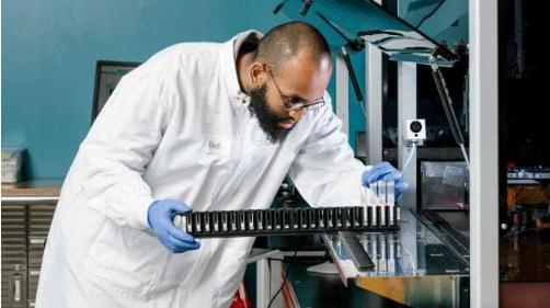 研究和開(kāi)發(fā)人員 Abdi Khalif 在 Color Genomics 的基因組測(cè)試實(shí)驗(yàn)室中工作