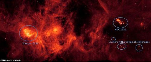 在這片龐大星云的右邊坐落著一個(gè)明亮的年輕恒星群,被稱為 NGC1333,距離地球 1000 光年。自 20 世紀(jì) 80 年代中期以來,天文學(xué)家就觀察到了這團(tuán)恒星,但在其下方的星團(tuán)至今仍是個(gè)謎。