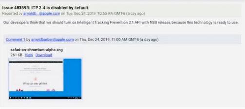 據(jù)了解,早先蘋(píng)果就推出過(guò)基于 Windows 平臺(tái)的 Safari 瀏覽器,但這一項(xiàng)目在幾年前停止了開(kāi)發(fā)?,F(xiàn)在,一名蘋(píng)果員工邀請(qǐng) Chromium 開(kāi)發(fā)人員在 Chromium 80 的問(wèn)題追蹤工具中激活“智能跟蹤預(yù)防”技術(shù)的標(biāo)記。