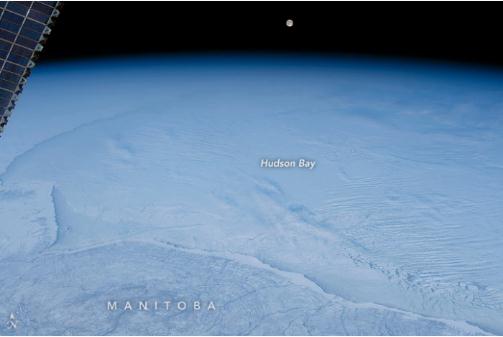 國際空間站為拍攝地球景觀提供了獨特的視角,有助于為陸地上的專家提供支持。NASA 指出,哈德遜灣一旦完全冰凍,便成為北極熊使用的重要棲息地,這些北極熊在冰上遷徙直至夏季融化開始。冰在十月開始形成。