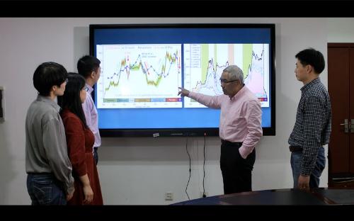 南京大學(xué)樊雋軒教授(左三)、沈樹忠院士(右二)等分析大數(shù)據(jù)計算的結(jié)果