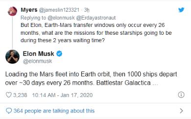 一位 Twitter 用戶(hù)在看了這些數(shù)據(jù)詢(xún)問(wèn)馬斯克真的能在 2050 年之前將 100 萬(wàn)人送上火星,對(duì)此馬斯克的回答是--“是的”。