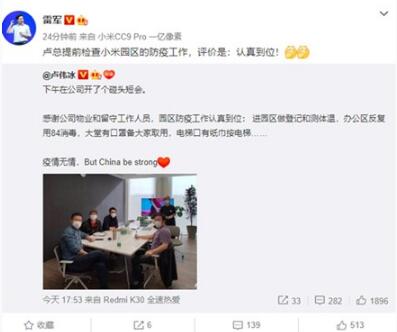 近日小米集團副總裁、Redmi品牌總經理盧偉冰在微博透露,在公司開了個碰頭會,并對物業(yè)和留守工作人員表達了感謝。不出意外的話這也就預示著這就是在為小米10系列的發(fā)布做準備。更關鍵的是,雷軍轉發(fā)了盧偉冰的這條微博稱:“盧總提前檢查小米園區(qū)的防疫工作,評價是:認真到位!”并且當有網友問道:“雷總該檢查那啥了”時,雷軍回復道:“我2/3再去檢查一下。”根據(jù)以往在發(fā)布前一周開始正式預熱的習慣,我們推測,小米10的發(fā)布會可能并不會受到影響,且發(fā)布時間很可能就在此前預計的2月10日。