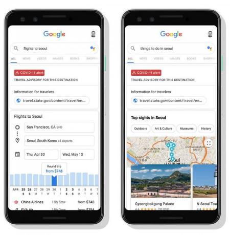 在移動(dòng)端和桌面端搜索旅游目的地時(shí),谷歌引入了一個(gè)非常小但很重要的功能--提供旅游目的地的實(shí)用建議?,F(xiàn)在當(dāng)你搜索航班、酒店和活動(dòng)的時(shí)候,網(wǎng)站就會(huì)顯示該地區(qū)的疫情情況,以及疫情對(duì)當(dāng)?shù)芈糜萎a(chǎn)生的影響。